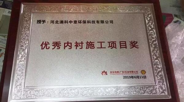 在本次活動中,延長殼牌(廣東)石油有限公司授予了澳科中意?本年度優(yōu)秀內襯施工項目獎,澳科中意?獲此殊榮的同時,也十分感謝延長殼牌(廣東)對我司的認可與肯定,是對接下來項目合作的一種鼓勵與鞭策,不予懈怠、不忘初心。